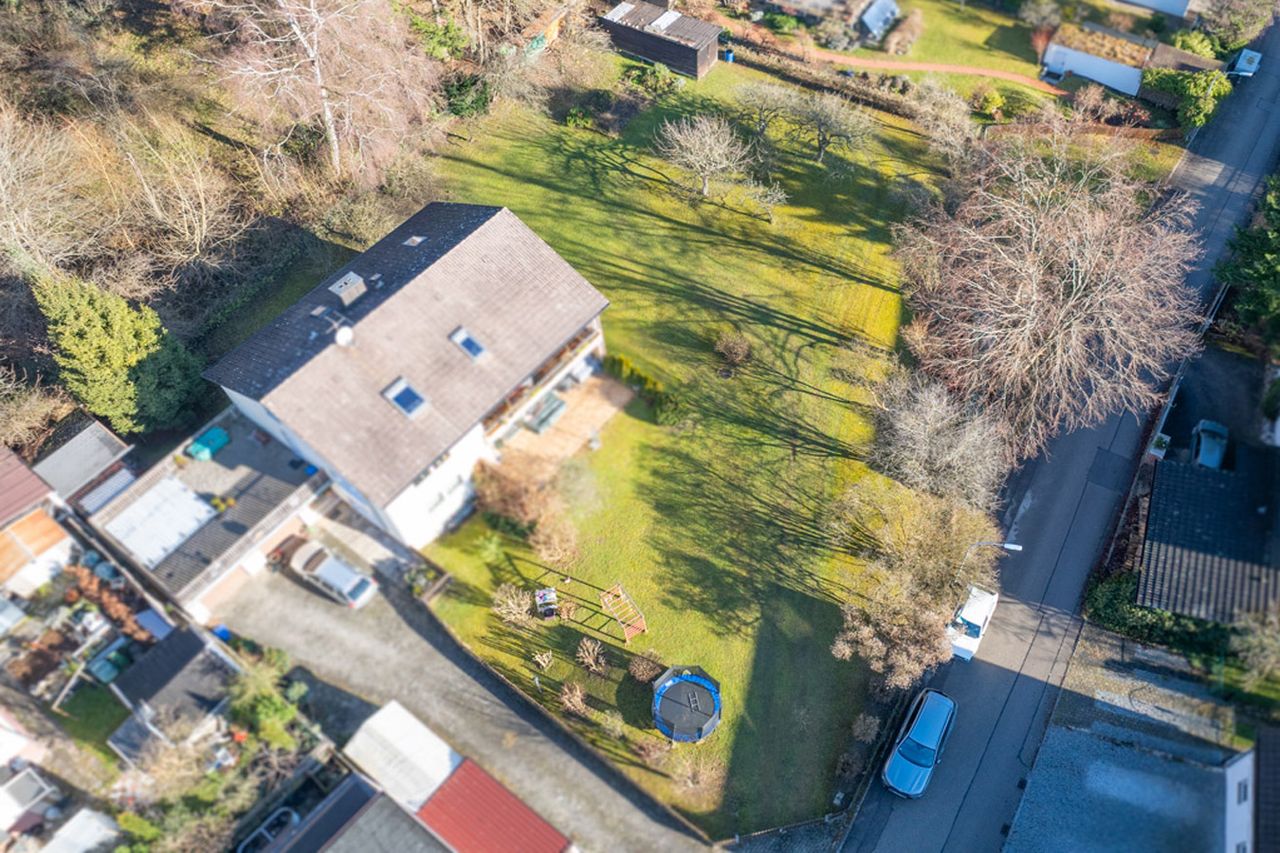 Ein vielseitig bebaubares, großzügiges und sehr schön gelegenes Grundstück. Das ca. 950 m² große Grundstück entsteht durch die Teilung eines Bestandsgrundstücks, das mit einem 3-Familienhaus bebaut ist. durch die leichte Hanglage in Richtung Zufahrtsstraße ergeben sich optimale Nutzungsmöglichkeiten auch z.B. eine Souterrains. Die Zufahrt erfolgt von Südwesten „schräg“ – siehe Lageplan und Fotos. Beim aktuellen Bodenrichtwert ergäbe sich für das erschlossene und unbebaute Baugrundstück ein Wert von nahezu € 1,0 Mio.